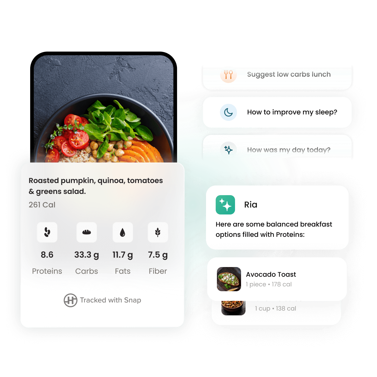 Improve your nutrition with HealthifySnap's advanced meal tracking & meet Ria, your personalized AI coach.