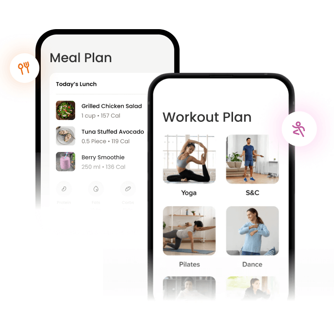 No crash diets, only balanced nutrition, with foods you love to eat. Customised diet and workout plan as per your need anytime with AI Coach Ria.