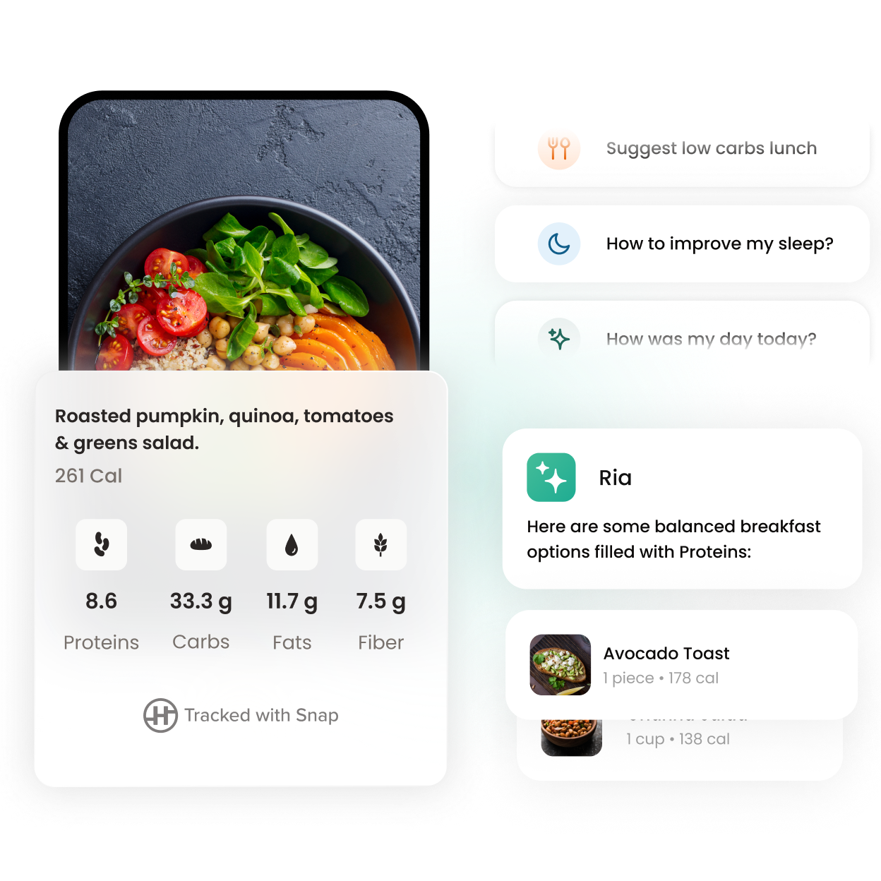Redefine fitness with AI Coach Ria & HealthifySnap. Talk to us to learn more!